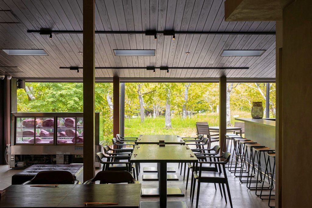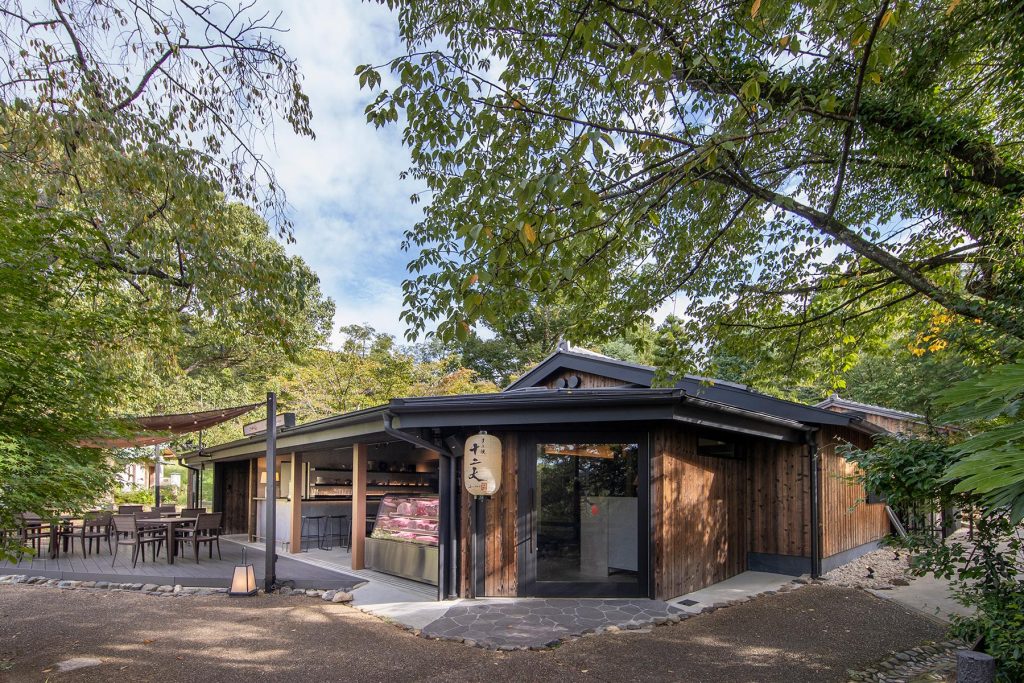 内装は、京都らしい上質な和の趣を基調に、シンプルでモダンな家具を配した落ち着きある空間になっており、テラス席では、季節ごとに表情を変える景色を眺めたり、散歩の途中に愛犬と立ち寄ることも可能です。